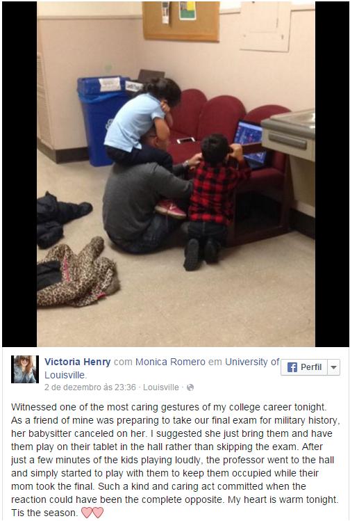 “Ela é uma mãe de dois filhos e está indo para a escola. Esse é o tipo de coisa que é realmente impressionante”, disse o professor à rede norte-americana ABC News. Mas eu, lidar com seus filhos por 45 minutos, não é impressionante”.