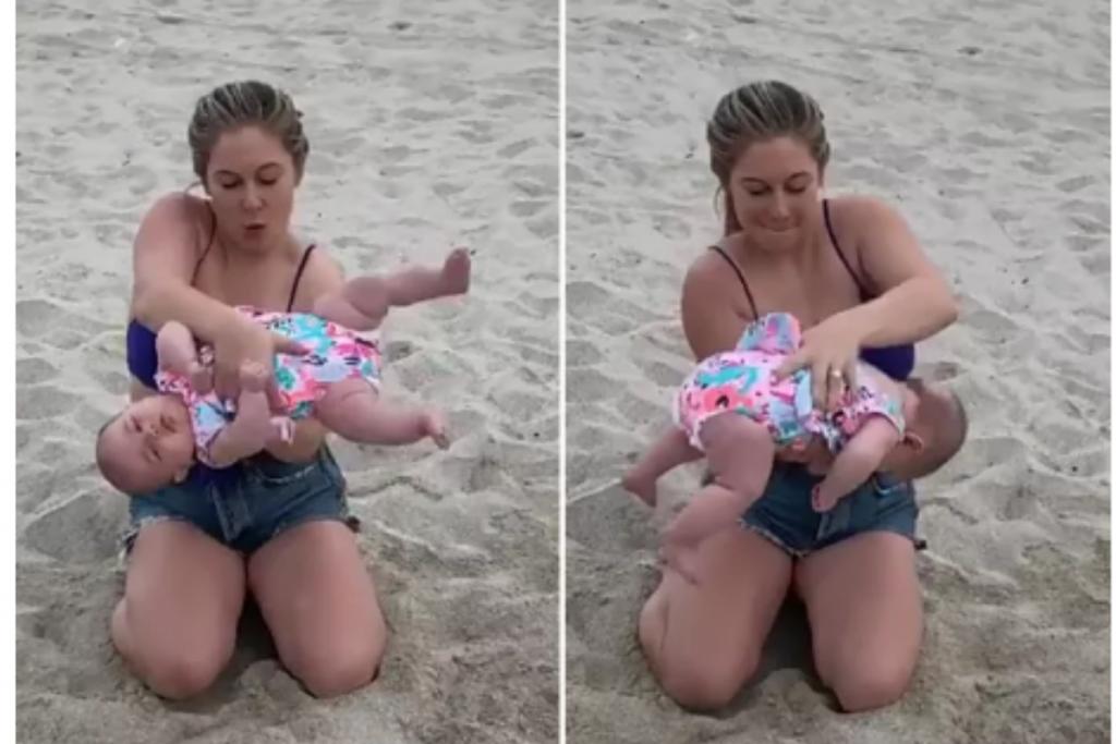 A ex-ginasta olímpica, Shawn Jhonson postou um vídeo da filha nas redes sociais e causou polêmica. A meninda, Drew, de 3 anos, aparecia sendo virada de cabeça para baixo plea mãe em uma praia em Miami, Flórida. A mulher brinca que a menina está fazendo o primeiro giro acrobático.