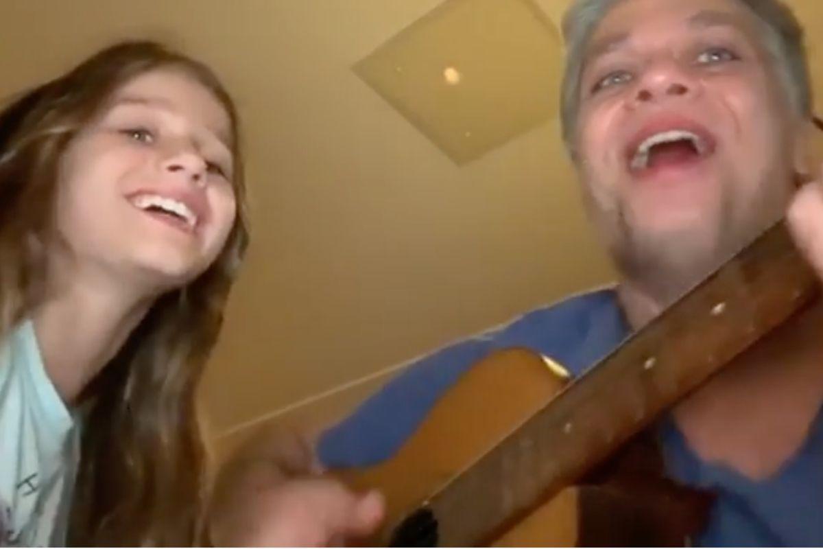 Os dois cantaram a música da norte-americana Janis Joplin, Mercedes Benz. “Ella mandou um ‘everybody’. Obedeço”, escreveu em legenda. A menina de apenas 8 anos mostrou que tem um talento enorme e tudo indica que seguirá os mesmos passos profissionais do pai.