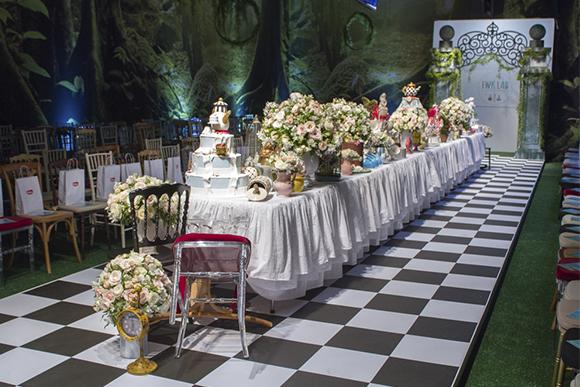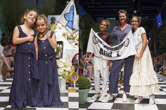 Além dos desfiles, o tema chamou bastante a nossa atenção. Parecia que fomos convidadas a tomar um chá com o chapeleiro maluco! E ele realmente estava lá com a rainha de copas e o coelho da Alice. Os três tiraram várias fotos com o público e fizeram a alegria das crianças. Dá uma olhada no que rolou: