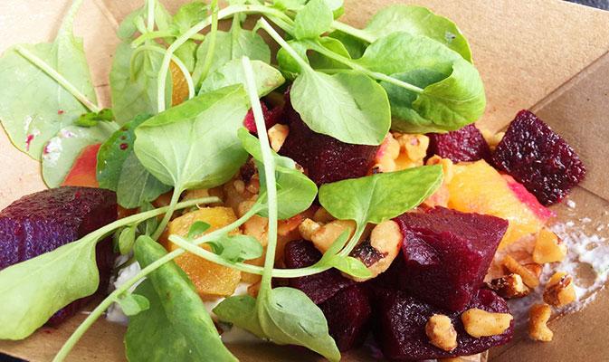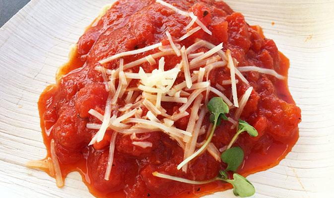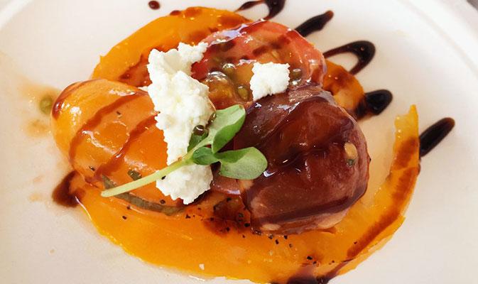 O nosso tour gastronômico começou antes mesmo de entrarmos no World Showcase, onde estão dispostos os quiosques de vários países com comidinhas típicas e gourmets. Isso porque a Disney preparou várias novidades para a edição deste ano, incluindo até mesmo uma barraquinha dedicada exclusivamente ao tomate, a Greenhouse Guru, onde encontramos um prato que, além de combinar perfeitamente com a temperatura escaldante, era a cara do Pequeno Gourmet: salada de tomates com queijo de cabra, aceto balsâmico envelhecido e micro-manjericão.