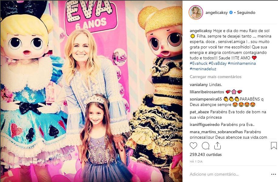 Eva, filha da apresentadora Angélica com Luciano Hulk, acabou de completar 6 anos na última terça-feira (25) e está cada vez mais parecida com a mãe. Ela publicou em seu perfil do Instagram fotos do aniversário da filha e podemos ver que por mais que a menina seja a cara do pai tem traços em comum com a mãe. Além disso, compartilhou uma mensagem de carinho para Eva.