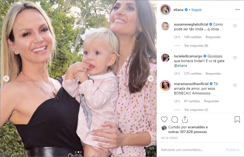 Nesta quinta-feira, 13 de Junho, Eliana compartilhou no Instagram fotos antes de uma festa. “Filha, você já está acompanhando a mamãe nas festas?! O tempo está passando rápido demais. Obrigada, meu Deus, por este milagre em nossas vidas”, postou Eliana, que arrasou na roupa de Manu.