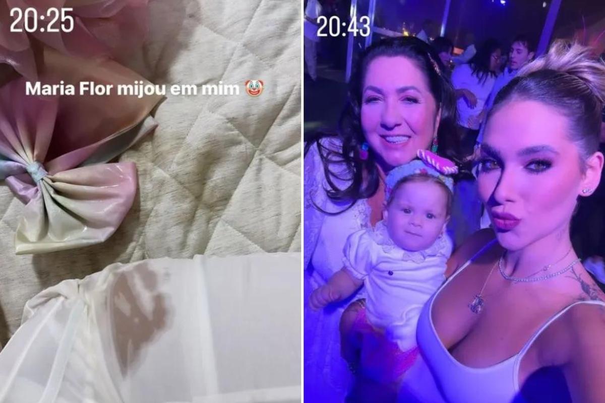 A influenciadora compartilhou com seus seguidores diversos momentos desse evento, incluindo um pequeno contratempo que enfrentou durante a noite. Vestindo um deslumbrante vestido branco avaliado em quase R$ 26 mil, Virginia revelou que sua filha mais nova, Maria Flor, de apenas 7 meses, acabou urinando na peça.