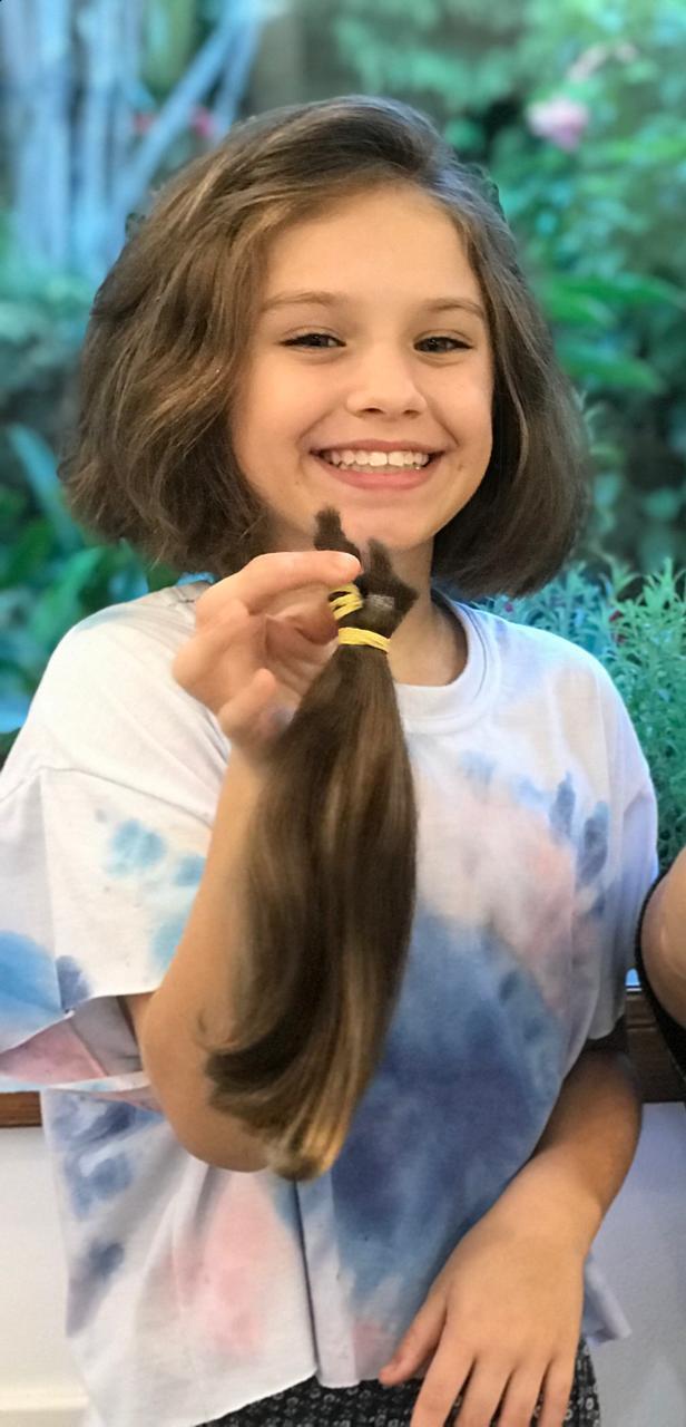 Beatriz se transformou totalmente e confessou: “Fico feliz por saber que doando meu cabelo posso ajudar alguém”.