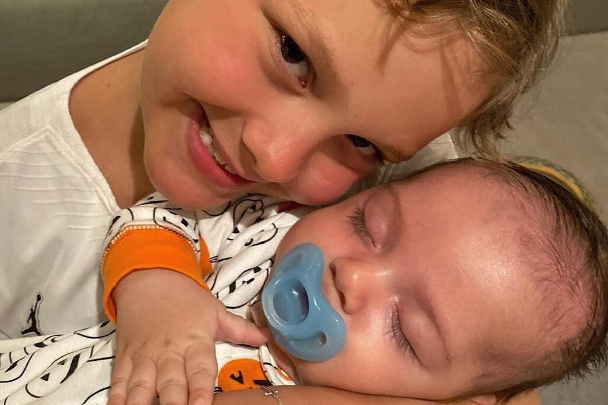 O menino Davi Lucca, de 8 anos, filho do jogador de futebol Neymar Jr e da influenciadora Carol Dantas, apareceu em foto segurando o irmão Valentin, de 2 meses.