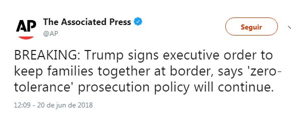 O presidente americano Donald Trump assinou o decreto que suspende a separação de pais e filhos imigrantes na fronteira com o México. Agora, as famílias que entrarem nos Estados Unidos de maneira ilegal, serão detidas juntas. Mas, apesar disso, segundo a Exame, a administração do presidente dos Estados Unidos informou que a política do “tolerância zero” continuará. E agora, como vai ser?