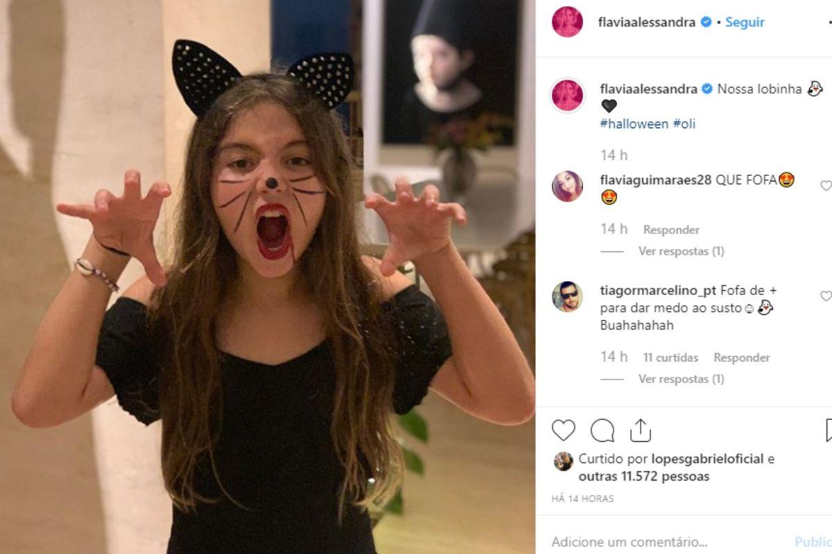 Flávia Alessandra, mãe de Giulia Costa e Olivia, usou as redes sociais para mostrar que a família também entrou no clima de Halloween. Além de publicar vários vídeos nos stories para mostrar que ela havia decorado a porta do apartamento para receber as crianças do prédio, a atriz também compartilhou como a filha se vestiu para pedir doces.