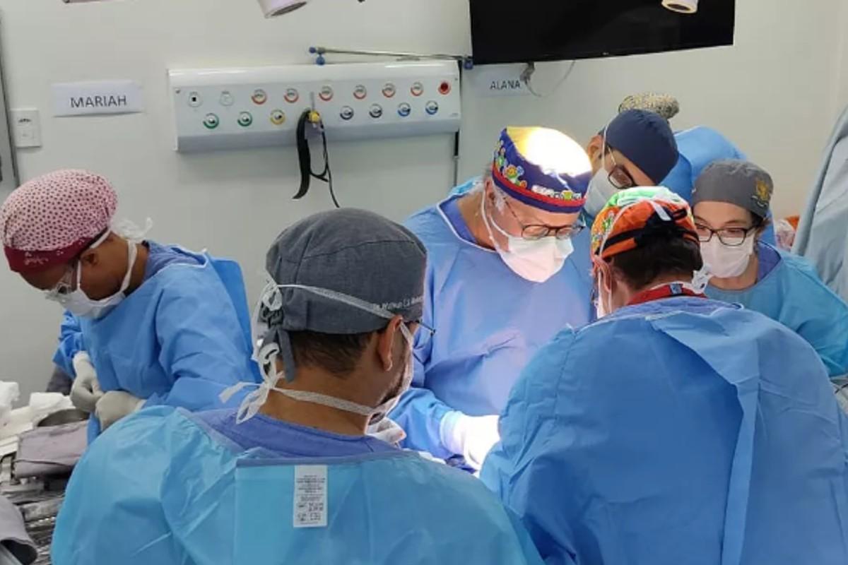 A previsão é que a cirurgia, que começou por volta das 7h30, dure até às 17h. Uma equipe de 40 profissionais está sendo envolvida para realizar a técnica.