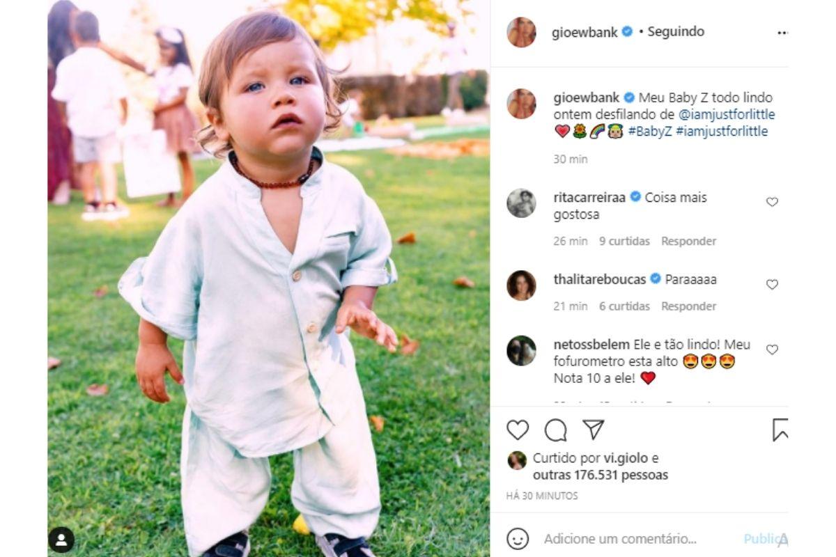 “Meu Baby Z todo lindo ontem desfilando”, contou Gioh. Os seguidores também não deixaram de comentar. “le e tão lindo! Meu fofurômetro esta alto. Nota 10 a ele!”, brincou uma fã, seguida de “Da uma mordida nessa bochecha linda por mim, Gioh”.