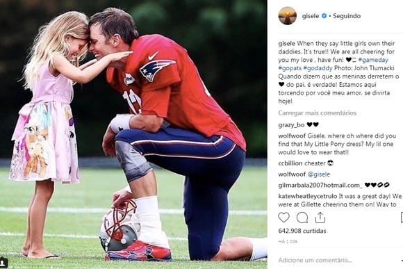 Mas neste domingo (30) Gisele fez uma publicação com uma legenda emocionante: “Quando dizem que as meninas derretem o coração do pai, é verdade! Estamos aqui torcendo por você meu amor, se divirta hoje”. Para celebrar e desejar boa sorte ao marido em um jogo, ela completou com uma foto onde pai e filha mostram carinho e vínculo afetivo. A gente amou!