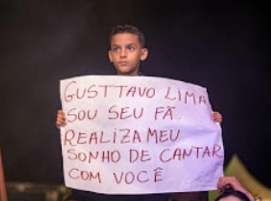 Durante a apresentação, o cantor viu um cartaz de um menino que pedia para cantar com ele. Gusttavo o convidou para subir no palco e, então, Pedro Lucas Marins cantou a música “DNA”. O cantor, por sua vez, não conseguiu evitar e chorou ao lado do menino.
