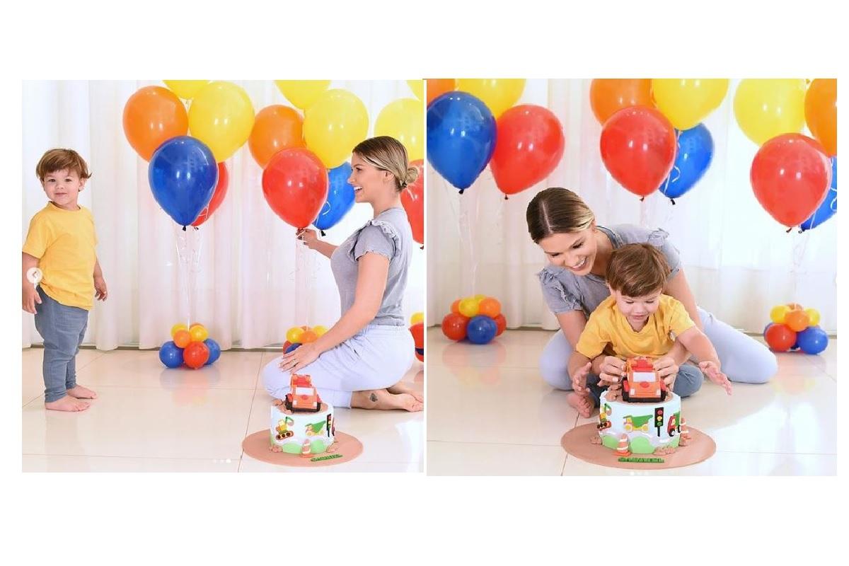 Andressa Suita, mãe de Gabriel e Samuel, foi na contramão das festas luxuosas e fez um bolo supersimples para comemorar o aniversário do filho mais velho. O menino completou dois anos nesta sexta-feira, 28 de junho, e ela compartilhou as fotos da comemoração no Instagram. A modelo escolheu uma decoração bem discreta e básica para ser o fundo do ensaio de fotográfico. Com muitos balões coloridos e apenas um bolo com tema de caminhão.