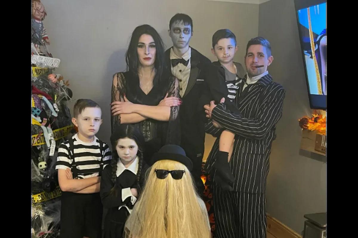 A mãe e o  parceiro Sam Cullip, 37, um estucador, e seus cinco filhos que compartilham seu sobrenome Adams – Alfie, 17, Jamie, 14, Kobie, 10, Bonnie, 7, Archie, 5 – adoram se vestir como a Família Addams e parecem surpreendentemente semelhantes ao clã macabro da TV.’’’Estou deixando minha criança interior muito feliz com todas as decorações. Também me vejo como uma mãe legal – talvez uma mãe bizarra também – que já montou a árvore de Natal e colocou enfeites de Halloween nela’’, relatou a mãe em entrevista ao ‘’DailyMail’’.