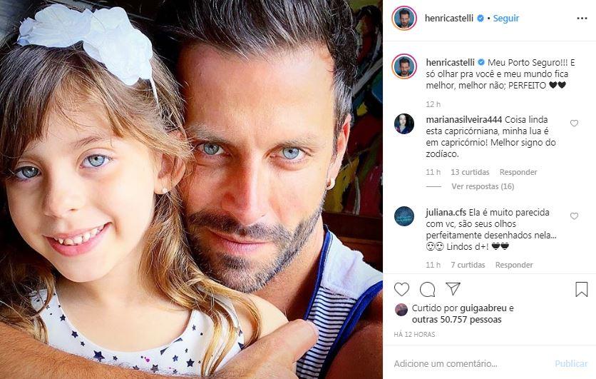 Os seguidores deixaram muitos comentários elogiando pai e filha. “Ela é muito parecida com você, os olhos são iguais!”, comentou uma seguidora. “Que lindos, ela é a sua cara!”, disse outra fã. “Linda essa união de pai e filha, parabéns pela menina, Henri”, comentou outro seguidor.