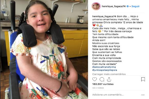 Hoje, 10 de novembro, a menina comemora 12 anos de vida. “Bom dia, hoje o universo amanheceu mais feliz”, escreveu o pai na legenda da foto de Olívia sorrindo. A imagem já tem mais de 160 mil curtidas e muitas pessoas estão dando parabéns a criança.