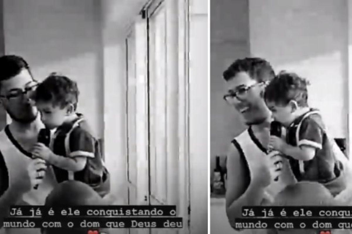 O irmão de Marília Mendonça, João Gustavo, publicou um vídeo lindo do sobrinho no último domingo, 21 de novembro. Isso porque, nele, Leo aparece “soltando a voz” com um microfone na mão!