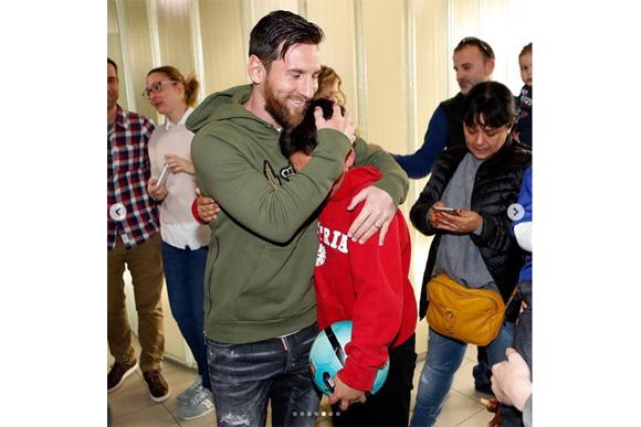 Messi com uma das crianças (Foto: reprodução instagram)