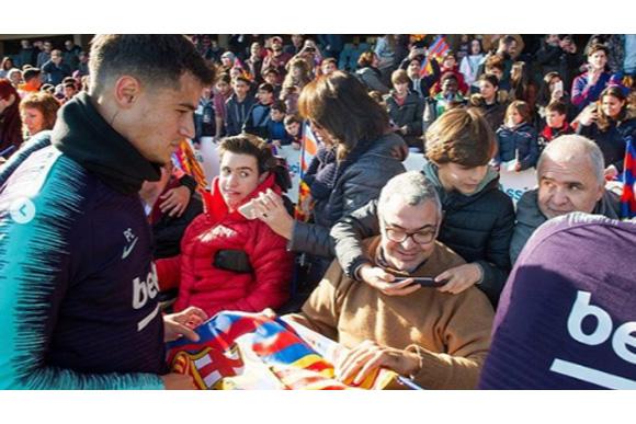 Antes da ação no hospital, os jogadores do Barcelona já haviam se encontrado com torcedores.
