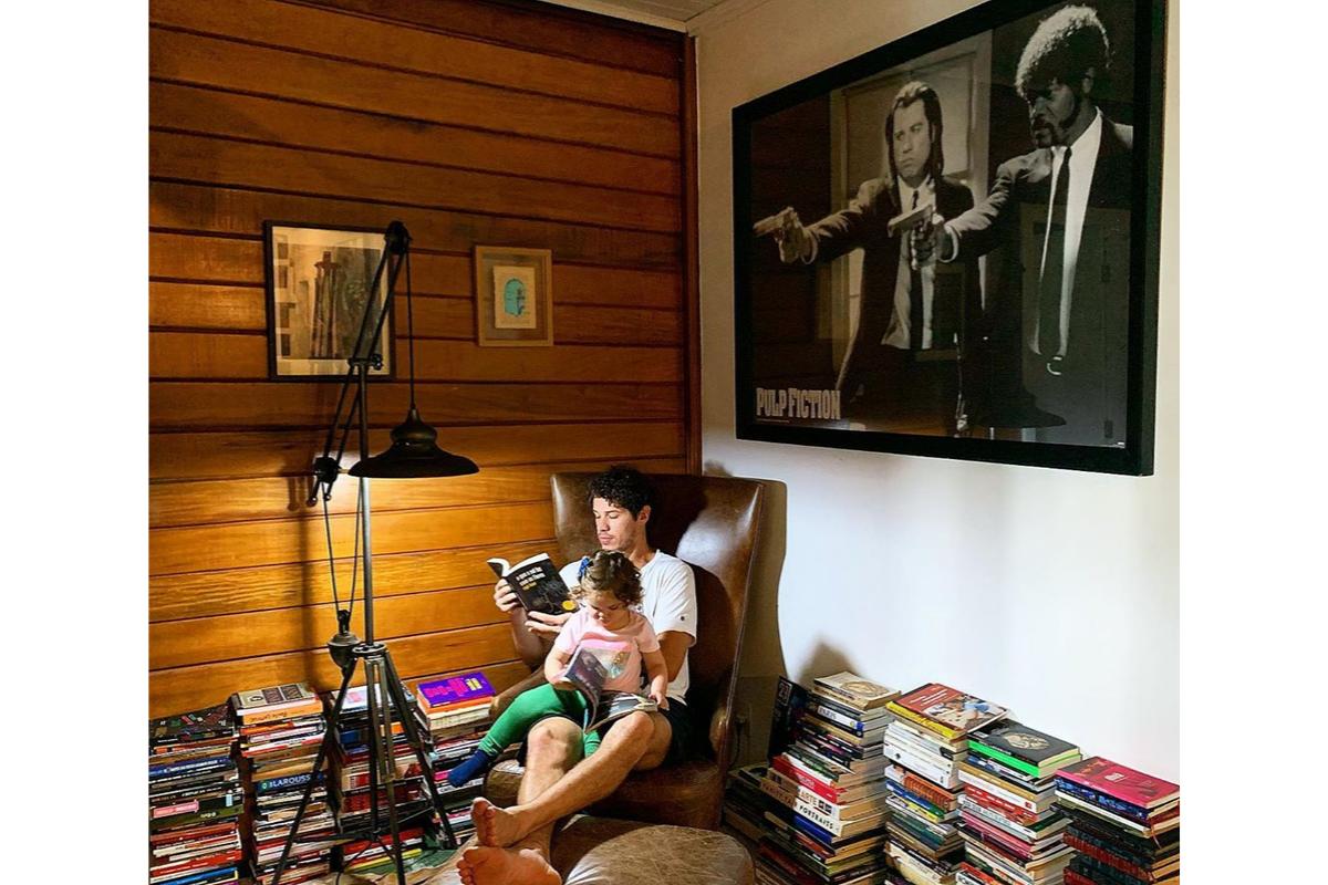 Na imagem, os dois estão se divertindo com diversos livros. “Leia para uma criança e vice-versa”, disse ele na legenda.