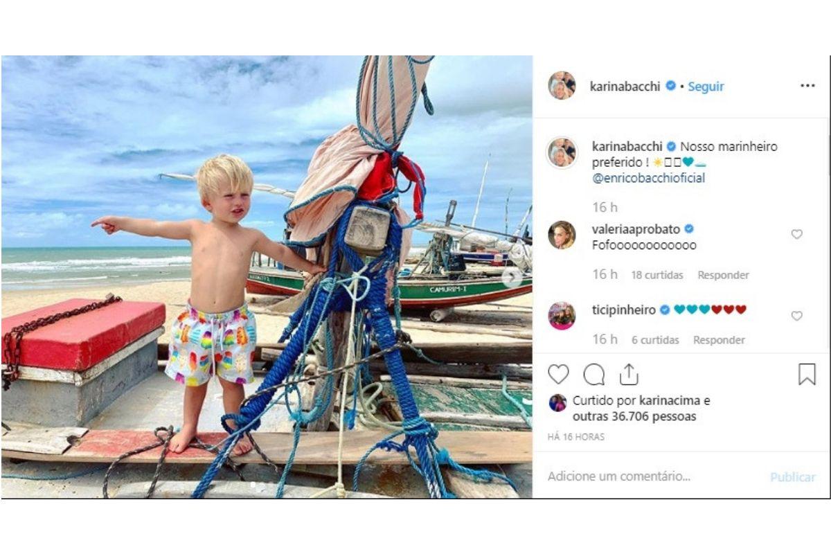 No último sábado, 07, ela postou uma foto do filho aproveitando e brincando durante um dia de sol. Na legenda, ela escreveu: “Nosso marinheiro preferido!”.