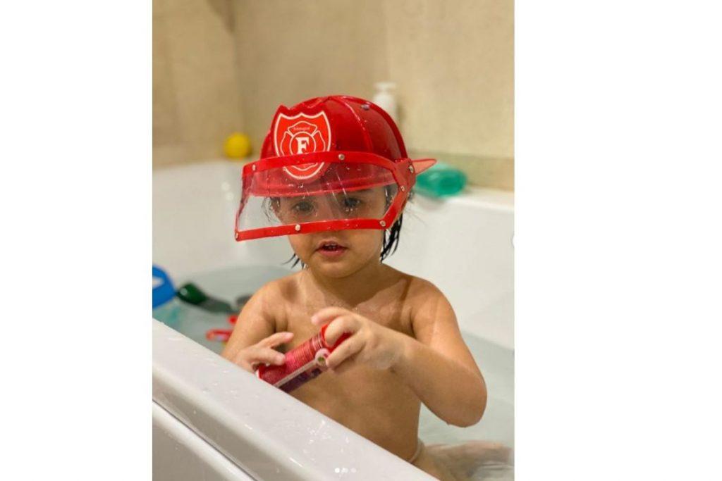 Depois da festa Kelly Key postou fotos da criança tomando um banho muito divertido na banheira. “Aquele banho após a festa… Com direito a “chapéu” de bombeiros e tudo! Porque ele disse estar fazendo uma experiência…”, escreveu ela na legenda.