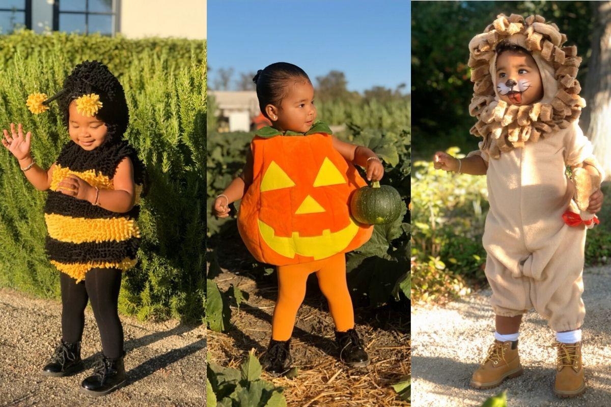 Khloé compartilhou uma coletânea de fotos da filha vestindo variadas fantasias. A menina encantou se caracterizando como abelha, abóbora e até leão. Muito fofa!