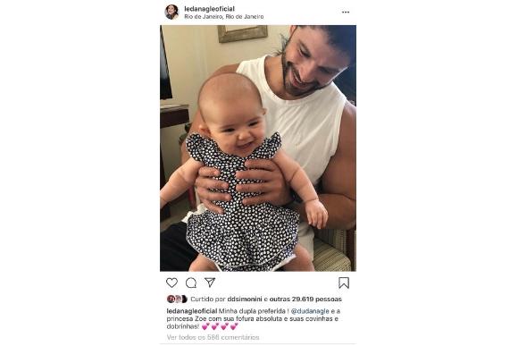 Duda aparece segurando a filha pelos braços enquanto a menina dá uma risada enorme. Na legenda, Leda se declarou: “”Minha dupla preferida! @dudanagle e a princesa Zoe com sua fofura absoluta e suas covinhas e dobrinhas”. Muito amor!