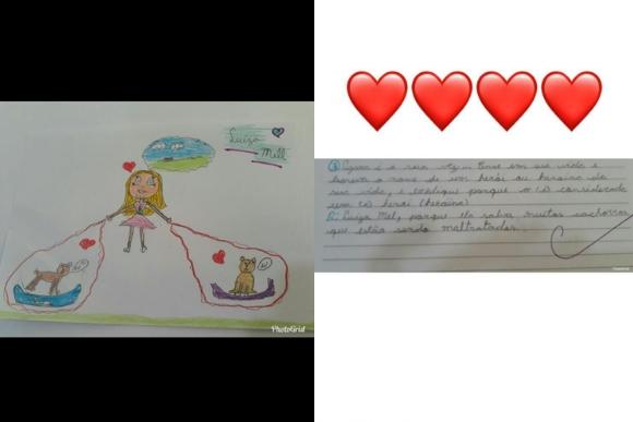 Para responder a pergunta de quem era a heroína preferida, a menina respondeu: Luisa Mell, porque ela salva muitos cachorros que estão sendo maltratados.