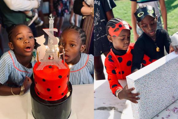 Madonna compartilhou a foto das gêmeas fantasiadas de suas personagens do desenho favoritas: Lady Bug e Chat Noir, heroínas da saga Miraculous: As Aventuras de Ladybug. A festa foi no jardim de sua casa superluxuosa e teve direito a piscina e muito mais! “Essa festa foi milagrosa”, brincou a cantora de 61 anos, que pelo visto assiste bastante o desenho com as filhas.