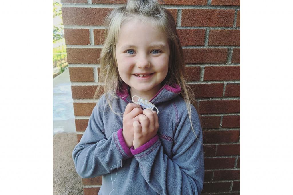 Evolette Westhouse perdeu um dente de leite no começo deste mês e insistiu que a família fizesse uma máscara de proteção para a Fada do Dente poder usar. Assim, ela poderia entrar na casa de maneira segura e sem correr o risco de contrair a nova doença.