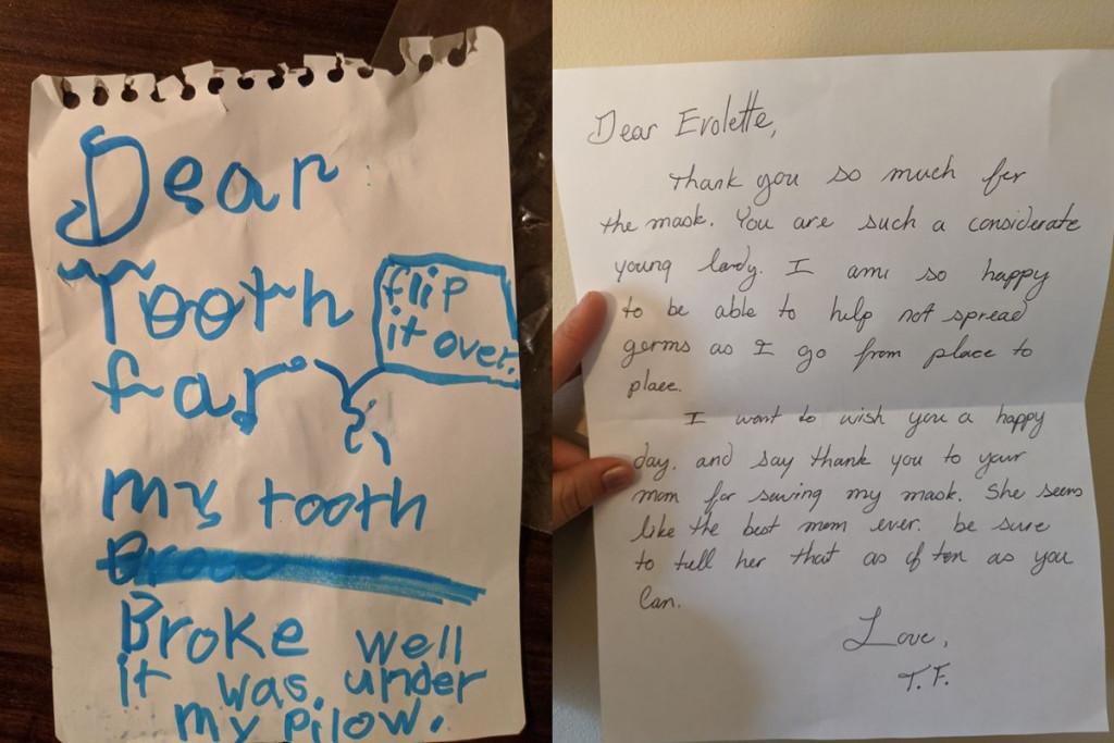 Kayla acabou atendendo o pedido da filha e costurou uma máscara especial para a Fada do Dente. “Avisem todas as crianças que a Fada está a salvo”, escreveu a mãe no Facebook. O pai de Evolette foi o responsável por escrever o bilhete que a Fada deixou.