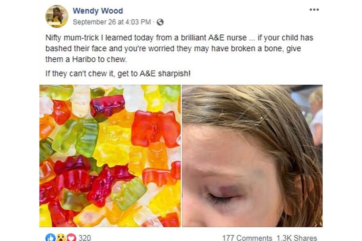 “Se seu filho bateu o rosto e você está preocupado se quebrou ou não algum osso, dê-lhe uma bala molinha para mastigar. Se eles não conseguirem mastigar, vá correndo ao pronto socorro“, escreveu Wood.