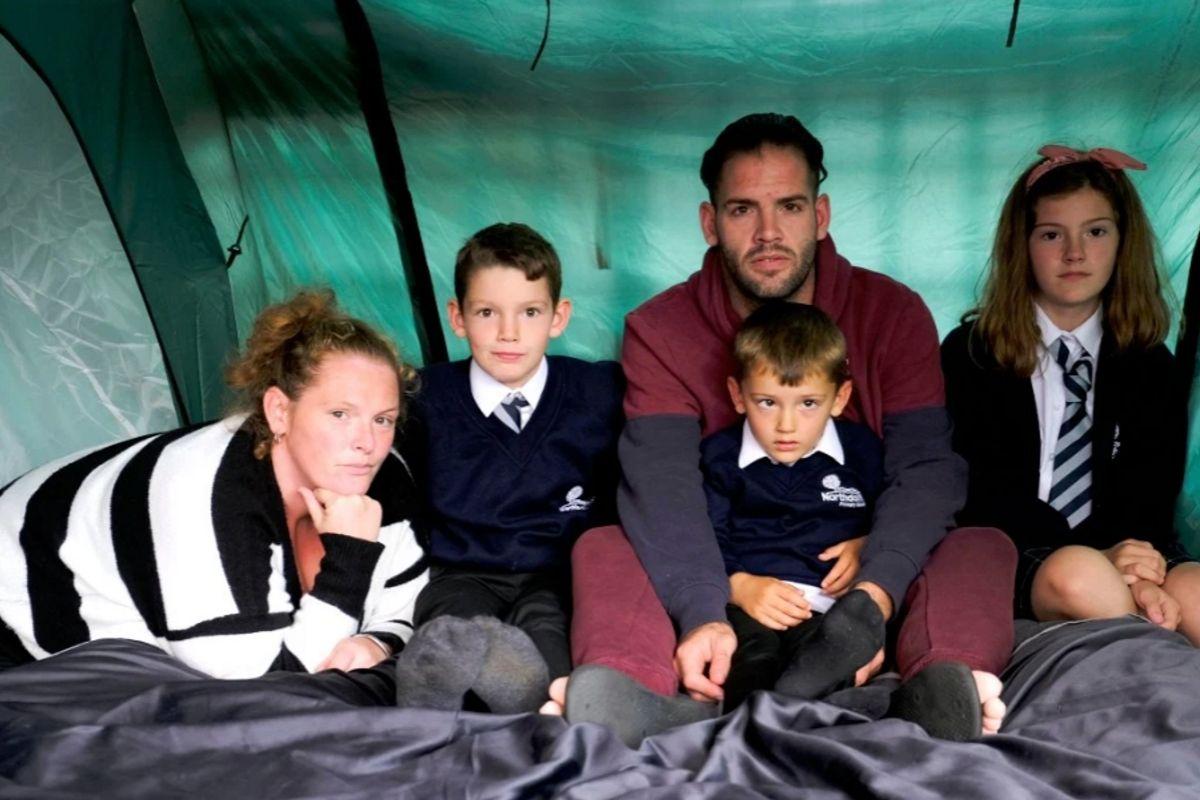 Joanne Foster está criando os seus três filhos numa barraca de acampamento no quintal da casa da sogra. Isso porque ela e o esposo ficaram desabrigados em agosto deste ano, após não conseguirem mais pagar o aluguel.