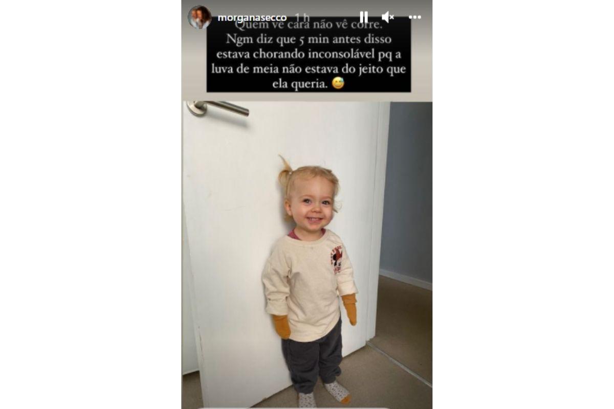 “Quem vê cara não vê corre”, começou ela, em legenda da foto publicada nos stories. “Ninguém diz que 5 minutos antes disso estava chorando inconsolável porque a luva de meia não estava do jeito que ela queria”. Fofa demais!