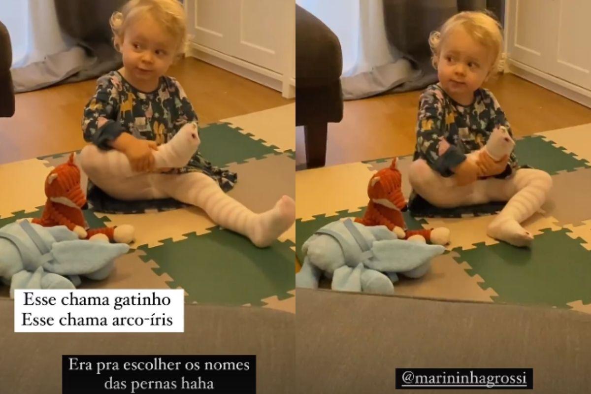 Morgana Secco, mãe de Alice, sempre usa as redes sociais para compartilhar momentos ao lado da filha e as descobertas que a menina tem ao longo do desenvolvimento dela. Nesta última terça-feira (19), ela publicou um vídeo da filha nos stories usando a imaginação para escolher nomes para as pernas e colocando-as para dormir.