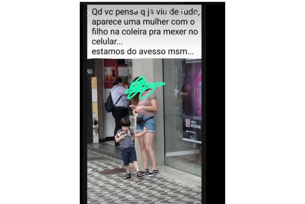 Amanda Massoni, mãe de Bernardo, andava em uma das ruas da cidade com a criança quando alguém tirou uma foto dos dois juntos e divulgou na internet uma postagem que dizia: “Quando você pensa que já viu de tudo, aparece uma mulher com o filho na coleira para mexer no celular. Estamos do avesso mesmo”.