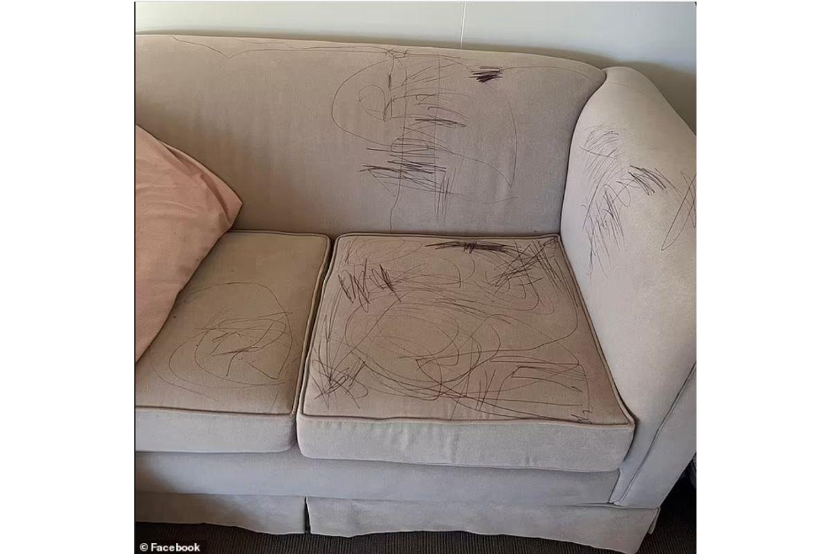 A mãe usou as redes sociais para pedir ajuda e explicou que o sofá todo rabiscado pertencia à amiga dela, que gentilmente cedeu a casa para ela e a criança ficarem enquanto estavam viajando – assim não precisariam gastar dinheiro ficando em um hotel.