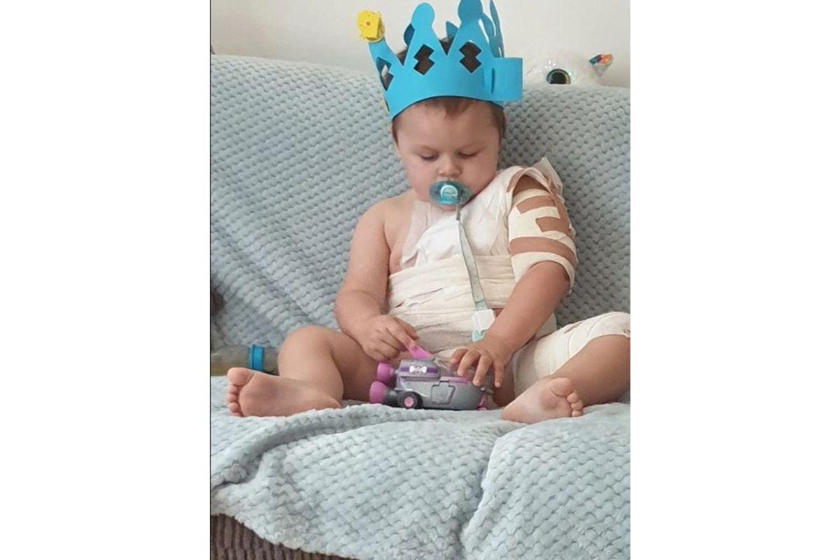 Enquanto a mãe estava no banheiro, Arthur entrou em casa e subiu na mesa que estava com a cafeteira quente, derrubando todo o conteúdo em seu corpo. “Ouvi o grito dele, nunca vou me esquecer dessa cena”, a mãe conta na publicação. “Foi horrível, ele só conseguia gritar e toda vez que eu encostava nele, um pouco de sua pele aparecia”.