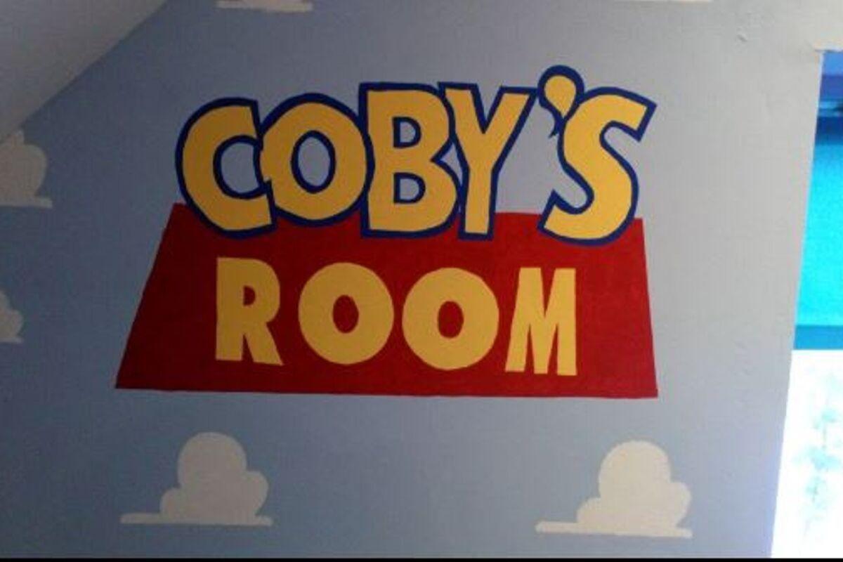 Kerry deu um jeito de desenhar as famosas nuvens brancas em um céu azul do quarto do personagem Andy. “No começo, pintei as paredes de azul bebê e pintei o logotipo do Toy Story na parede”, contou em entrevista ao LatestDeals. Na internet, ela encontrou nuvens iguais, imprimiu e recortou e pintou a forma na parede.