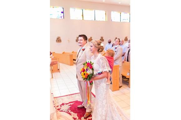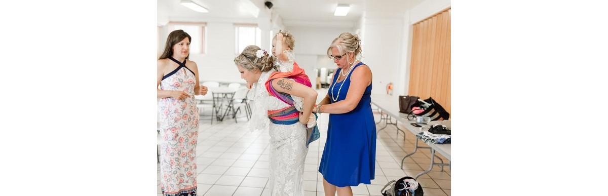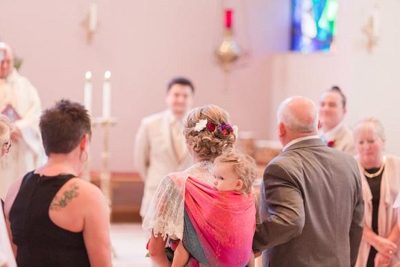 Ela teve a ideia de usar um sling para levar a filha consigo para o altar. “Nós realmente queríamos que ela fizesse parte da cerimônia, porque achamos que casamento é um compromisso para nossa família tanto quanto para nosso próprio relacionamento”, explicou Dalton para o POPSUGAR.
