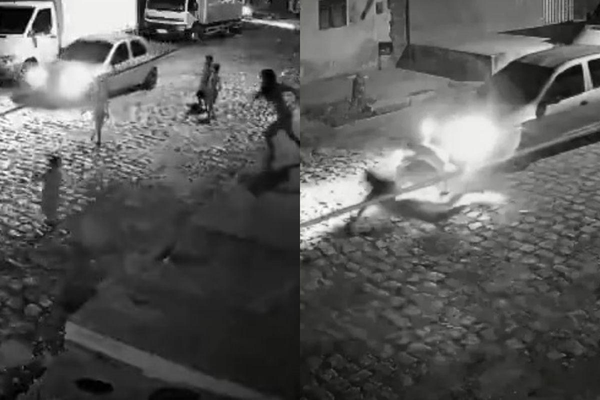 Nas imagens, é possível ver três crianças maiores jogando bola no meio da Rua Riachuelo. Um carro que passava pela região reduziu a velocidade, mas seguiu pela via, passando ao lado dos meninos. É nesse momento que o pequeno sai da calçada, corre para o meio da rua e quase é atingido pelo veículo. Eduarda corre e se joga para tentar tirar a criança da frente do carro.