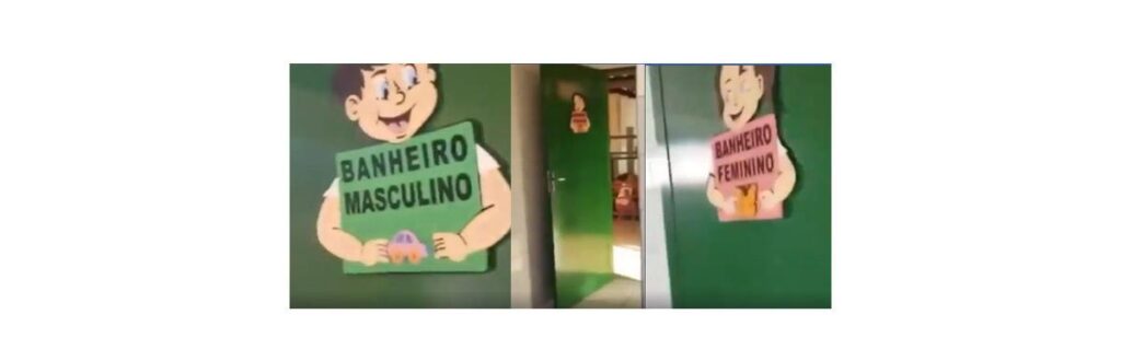 Antes da reforma, pelo vídeo postado pela mãe, é possível ver que por mais que as entradas fossem separadas entre meninos e meninas, o espaço dentro era aberto e não tinha divisões: “Olha como é aqui dentro. Tem as pias, chuveiros, as privadinhas deles. Aí, para minha surpresa, banheiro masculino. Eu estou aqui no mesmo banheiro. Entro pelo feminino e saio pelo masculino.”