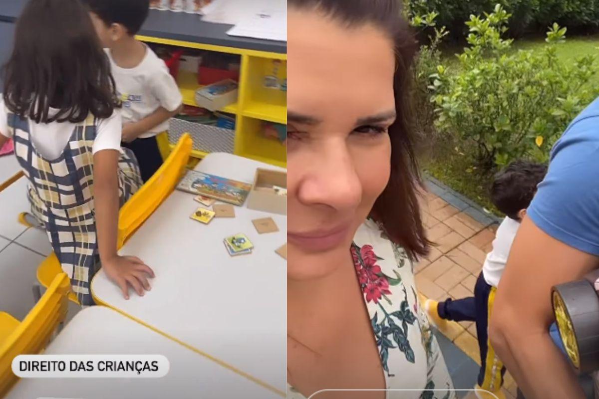 No vídeo ela aparece andando de mãos dadas com o marido, que segura a mala em formato de um cachorro do filho. Em uma sequência de vídeos compartilhados na rede social ela mostrou detalhes de como é a escola de Miguel Benjamim. Logo em seguida ela mostra o corredor, quadra de jogos, sala de brinquedos e aula.