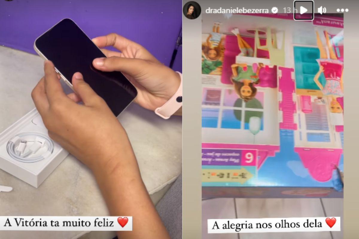 Stories de Daniele Bezerra falando sobre o caso Vitória