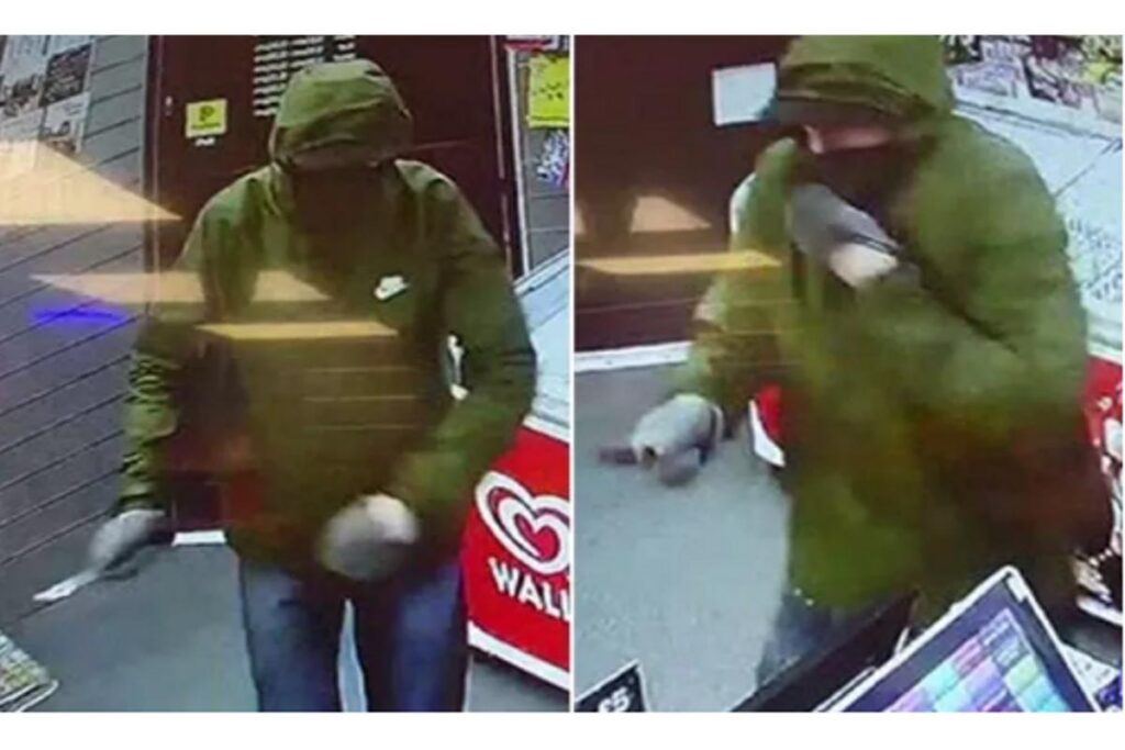 O pai e a filha, de 11 anos, estavam dentro de uma loja quando um homem de jaqueta verde e capuz entrou no estabelecimento para assaltá-los com uma faca na mão. O assaltante, no momento que tentou ir até o caixa, ele foi surpreendido com frutas, pães e refrigerantes indo em direção a ele.
