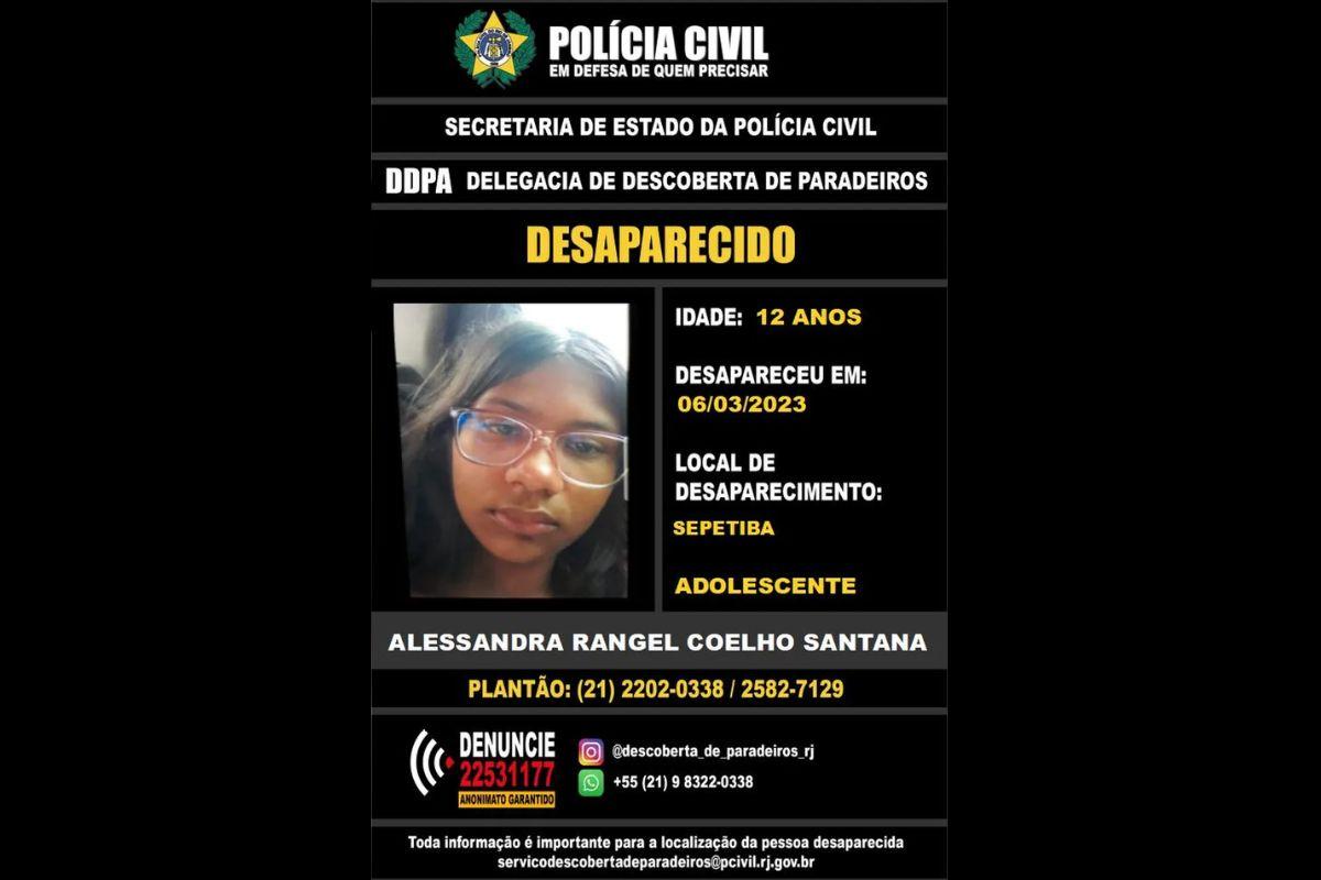 Ainda com as buscas por Alessandra Rangel Coelho Santana, menina de 12 anos que desapareceu na última segunda-feira, 6 de março, no bairro de Sepetiba, no Rio de Janeiro, familiares procuram montar um quebra-cabeças pelo sumiço.