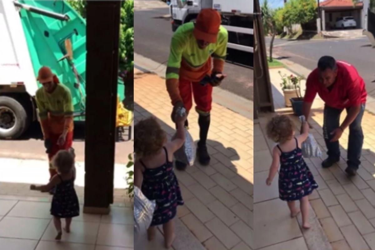 Uma menina de 2 anos, viralizou nas redes sociais por entregar panetones para coletores de lixo na porta de casa, em São José do Rio Preto, SP. O momento foi registrado e publicado nas redes sociais, atingindo mais de 1 milhão de visualizações.