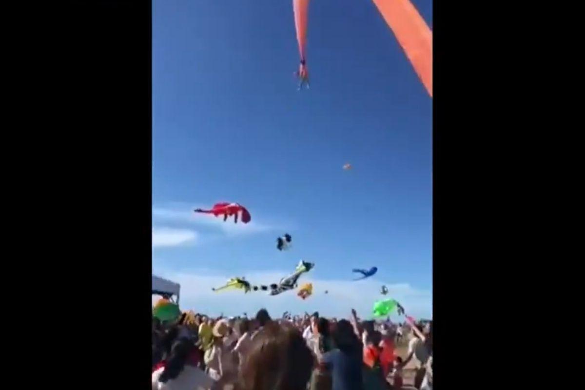 No vídeo a menina aparece presa na cauda da pipa pelo pescoço e voando descontroladamente até que conseguiu abaixar o suficiente para o público puxá-la até o chão. Assustados, espectadores gritaram quando a garota foi alçada pelo vento forte.