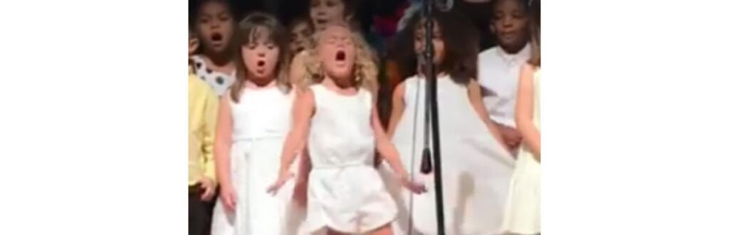 A filha de quatro anos de Michelle Neshin, Sophia, conquistou a internet com o destaque da sua performance com o coral da escola na música How Far I’ll Go, do filme Moana. A criança, que aparece bem na frente da turma, parece realmente sentir a letra da música. Ela claramente roubou a cena!